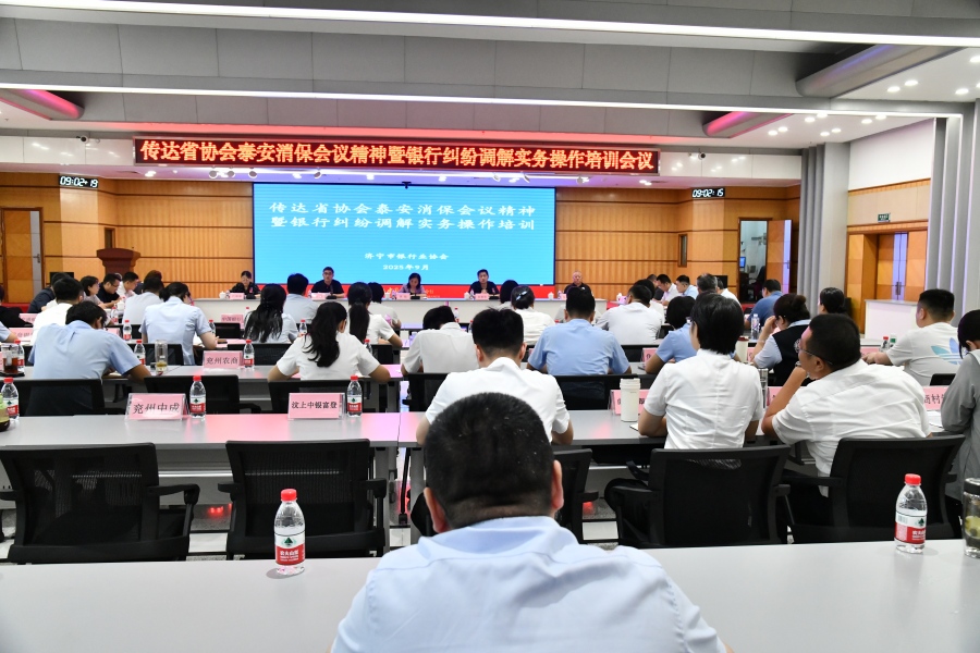 为提升济宁银行业消保工作质效,加强银行机构声誉风险防控能力建设,2025年9月5日,济宁市银行业协会举办传达省协会泰安消保会议精神暨银行纠纷调解实务流程培训会议,各会员单位消保部门负责人和济宁市银行纠纷人民调解委员会调解员专家小组成员共计60余人参加。会议由济宁市银行业协会秘书长徐秉初主持。