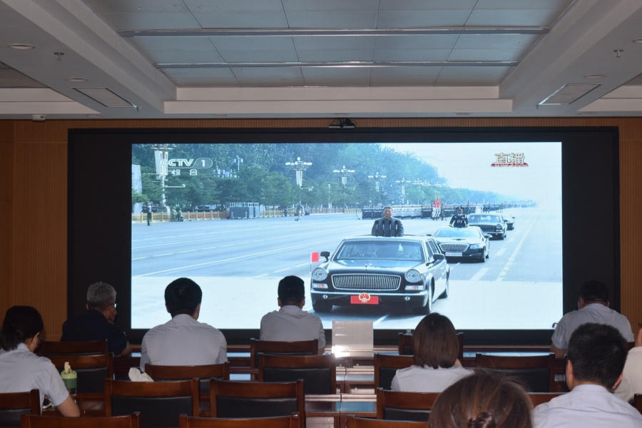 屏幕上,庄严的仪式、铿锵的话语、历史的回顾、有力的步伐,深深吸引并打动着每一位观看的员工。大家神情专注,仿佛置身于大会现场,为先烈们的英勇无畏而肃然起敬,为国家今日之富强而倍感自豪。