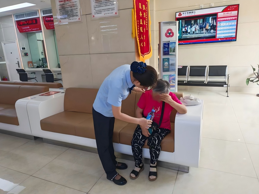 大堂经理意识到情况不妙,一边安抚老人的情绪,一边通知运营副行长启动应急预案。工作人员分工明确:有的疏散围观客户保持空气流通,有的赶紧为老人倒来一杯温水,有的联系老人子女,有的在旁陪伴观察状态……子女赶到后,看着慢慢恢复状态的老人,激动地对工作人员说:“太感谢你们了!要不是你们反应快,及时帮助我的母亲,真不知道会发生什么事情。你们的服务太贴心了,让我们感受到了满满的温暖。”